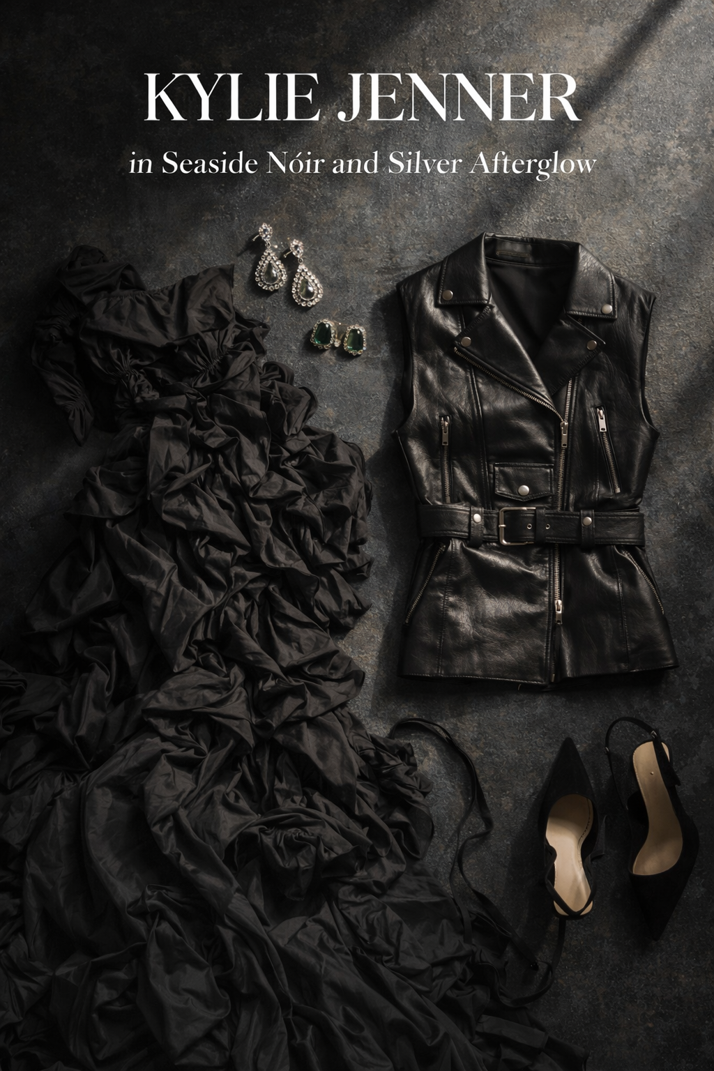 As I follow the images from preparation to possession, I keep thinking about how good editorial style is really a game of controlled contradiction. You, Kylie, are soft and severe in the same breath. The robe says innocence, the hair says intrigue. The ruffled gown says operatic romance, the shoes say sharpen it. The leather says rebellion, the chandelier earrings say do not confuse rebellion with carelessness. The final black halter moment says strip the scene down and let the silhouette do all the talking. Every chapter contradicts the last just enough to keep me leaning forward.