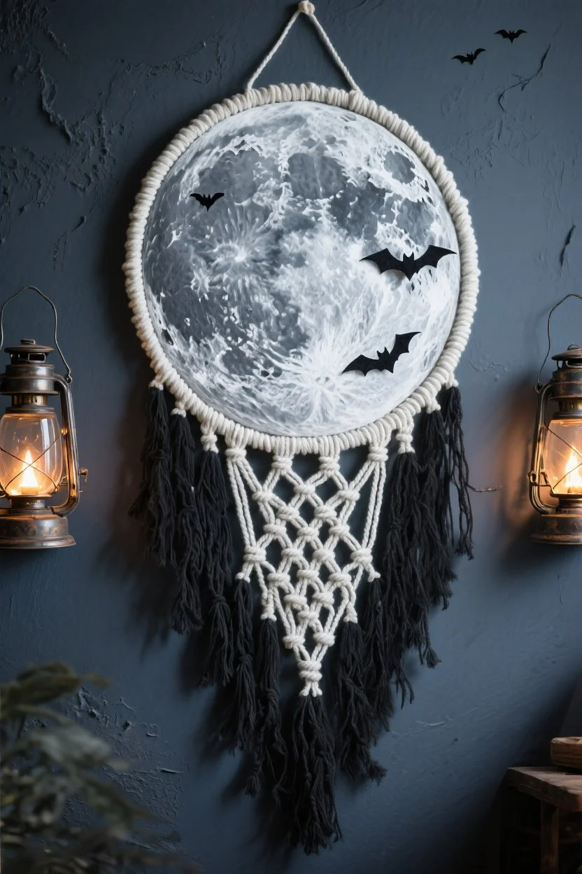 One of macrame’s most underrated powers is its tactile nature. Halloween is often presented visually—carved pumpkins, printed banners, and colored lights—but few decorations invite you to touch them. A well-made macrame piece adds a tangible warmth to spooky spaces.