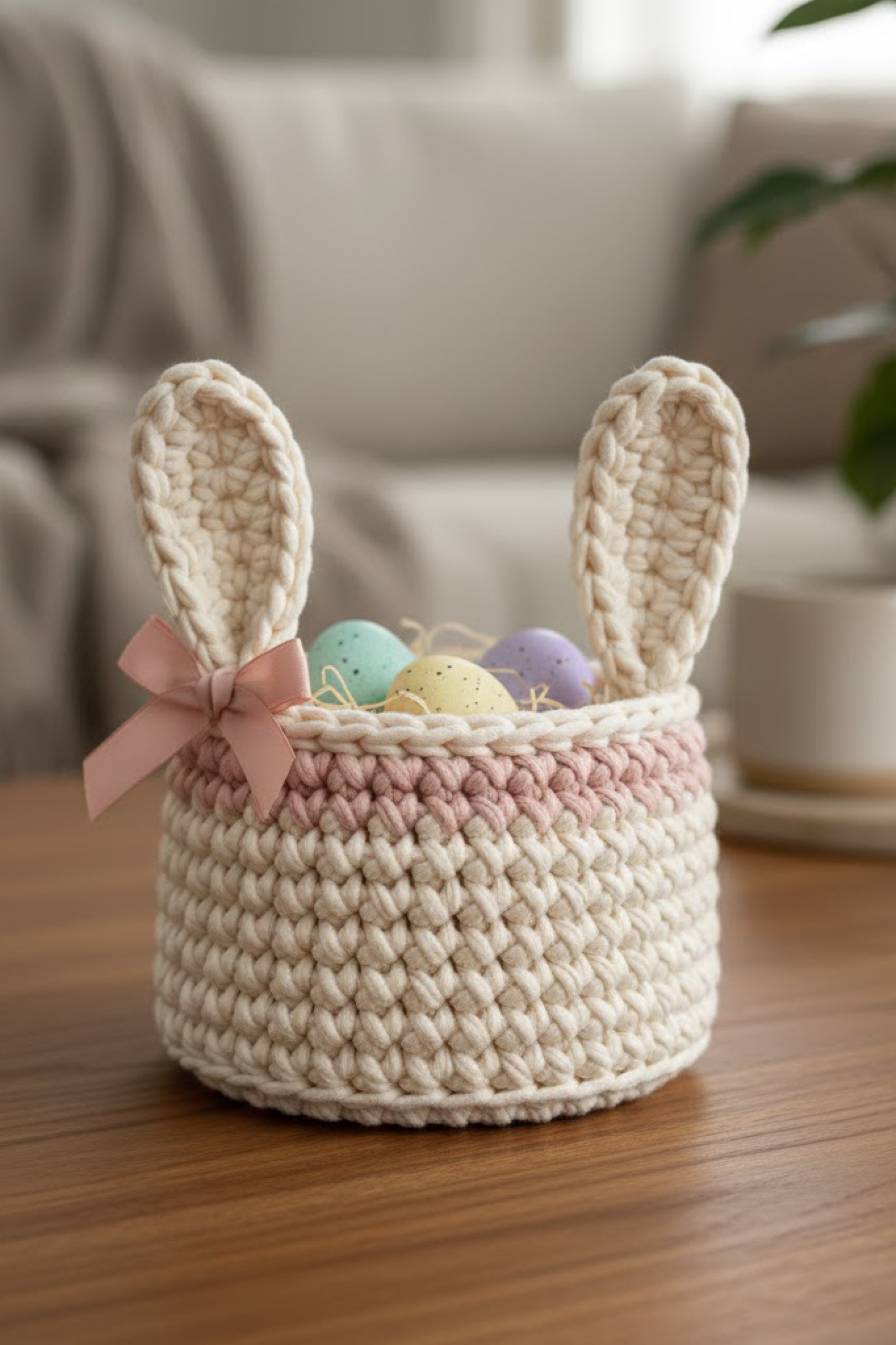 Bunny Ear Crochet Easter Basket With Blush Band: A Step-by-Step DIY Guide
