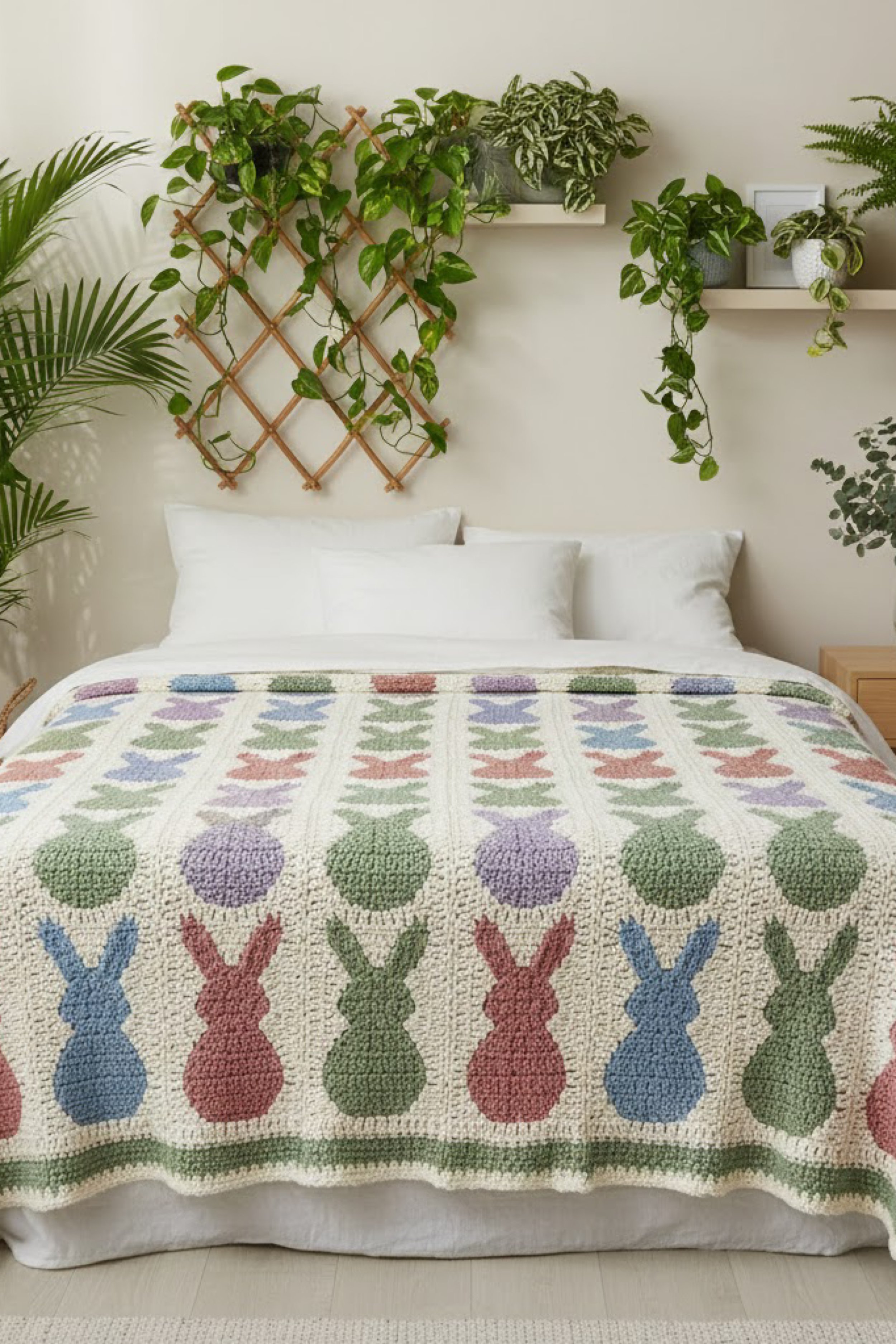 There is something instantly comforting about a handmade blanket. It is color, texture, and memory stitched into one cozy rectangle, then casually draped over a sofa or folded at the foot of the bed like it has always belonged there. This collection is all about that feeling, but with a fresh spring twist. Think soft pastels, clean neutrals, and playful motifs that feel right at home in a plant filled room full of warm light.
