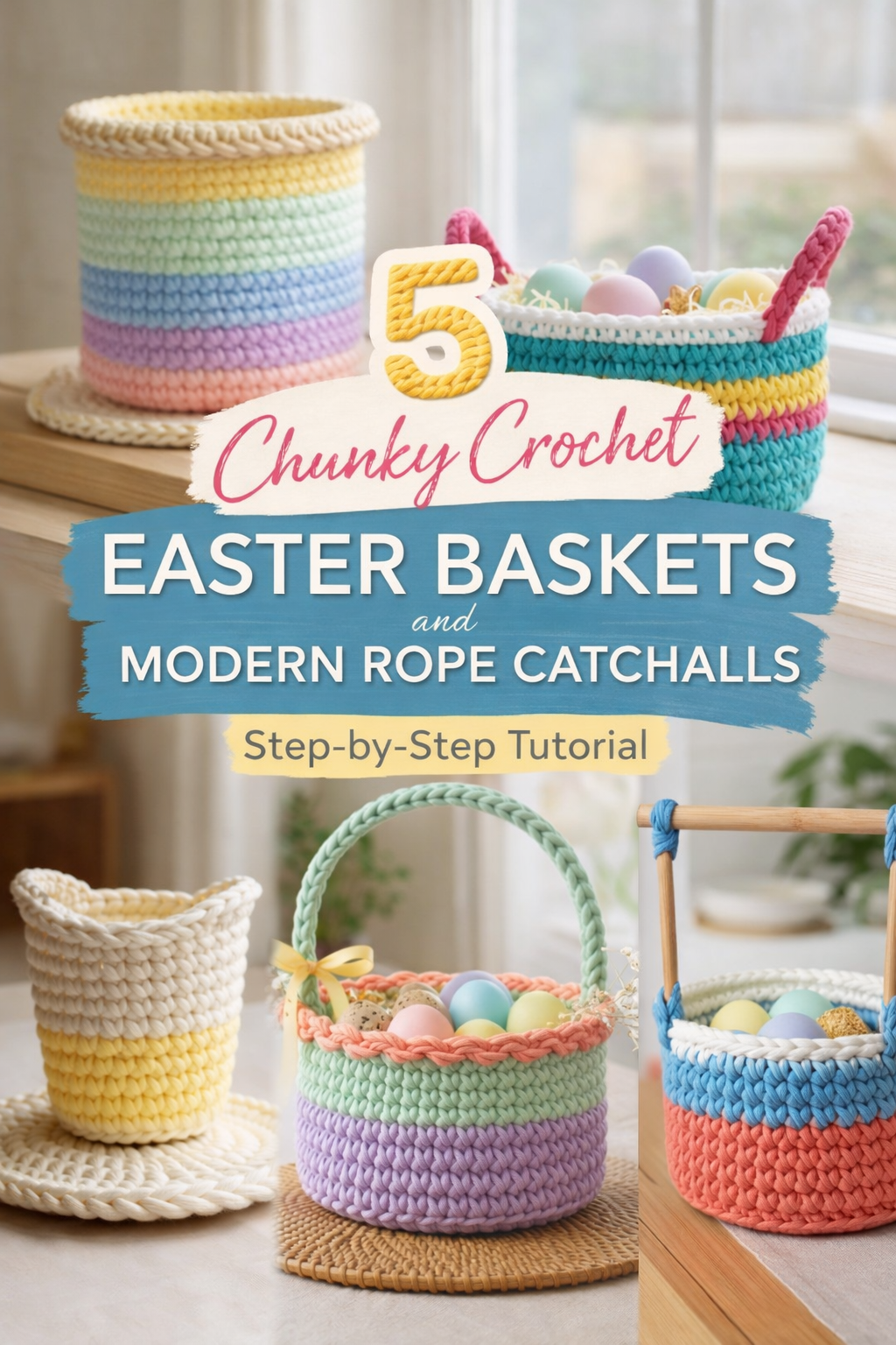 5 Chunky Crochet Easter Baskets and Modern Rope Catchalls Step-by-Step Tutorial