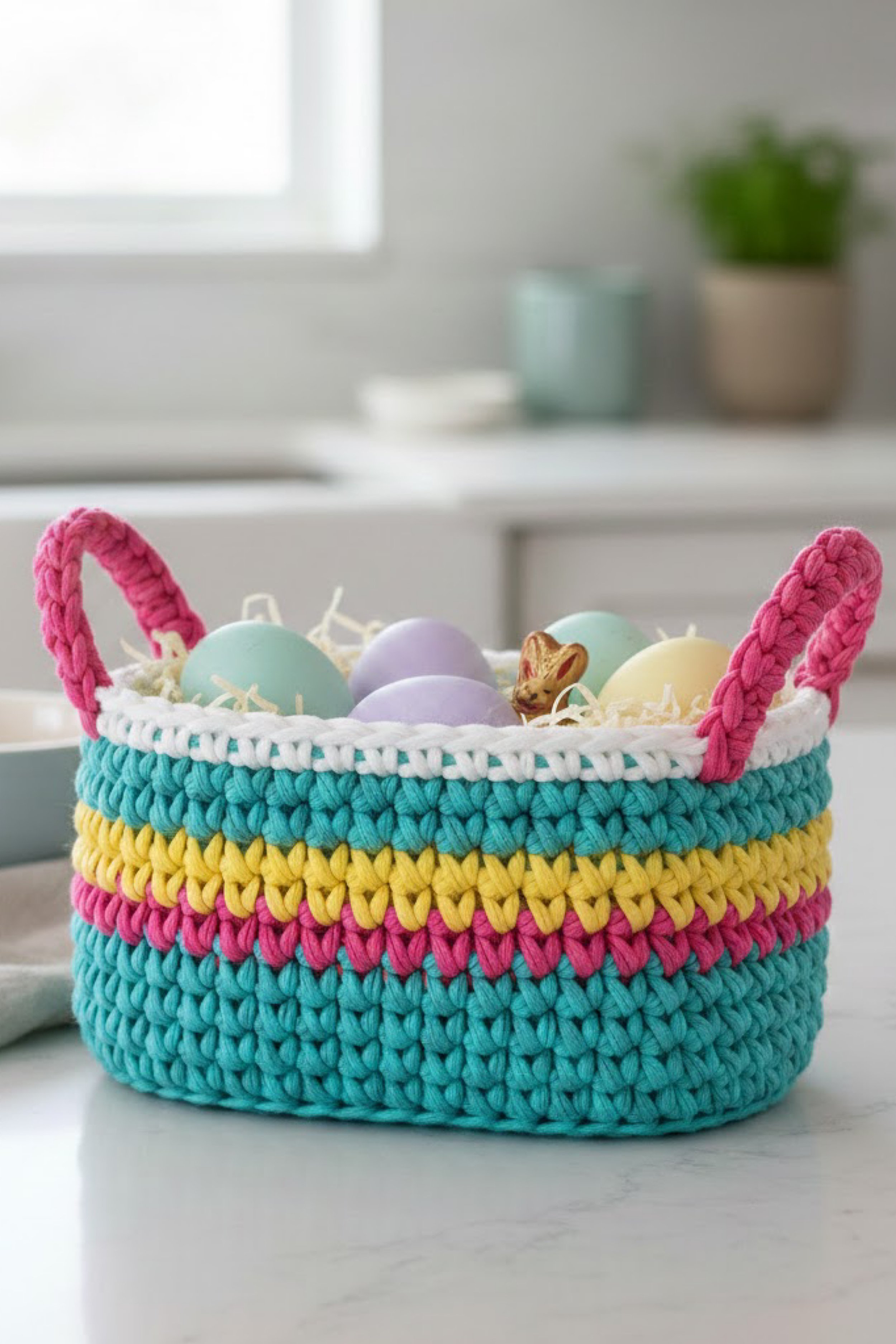 Bright Stripe Crochet Easter Basket With Chunky Handles DIY Guide