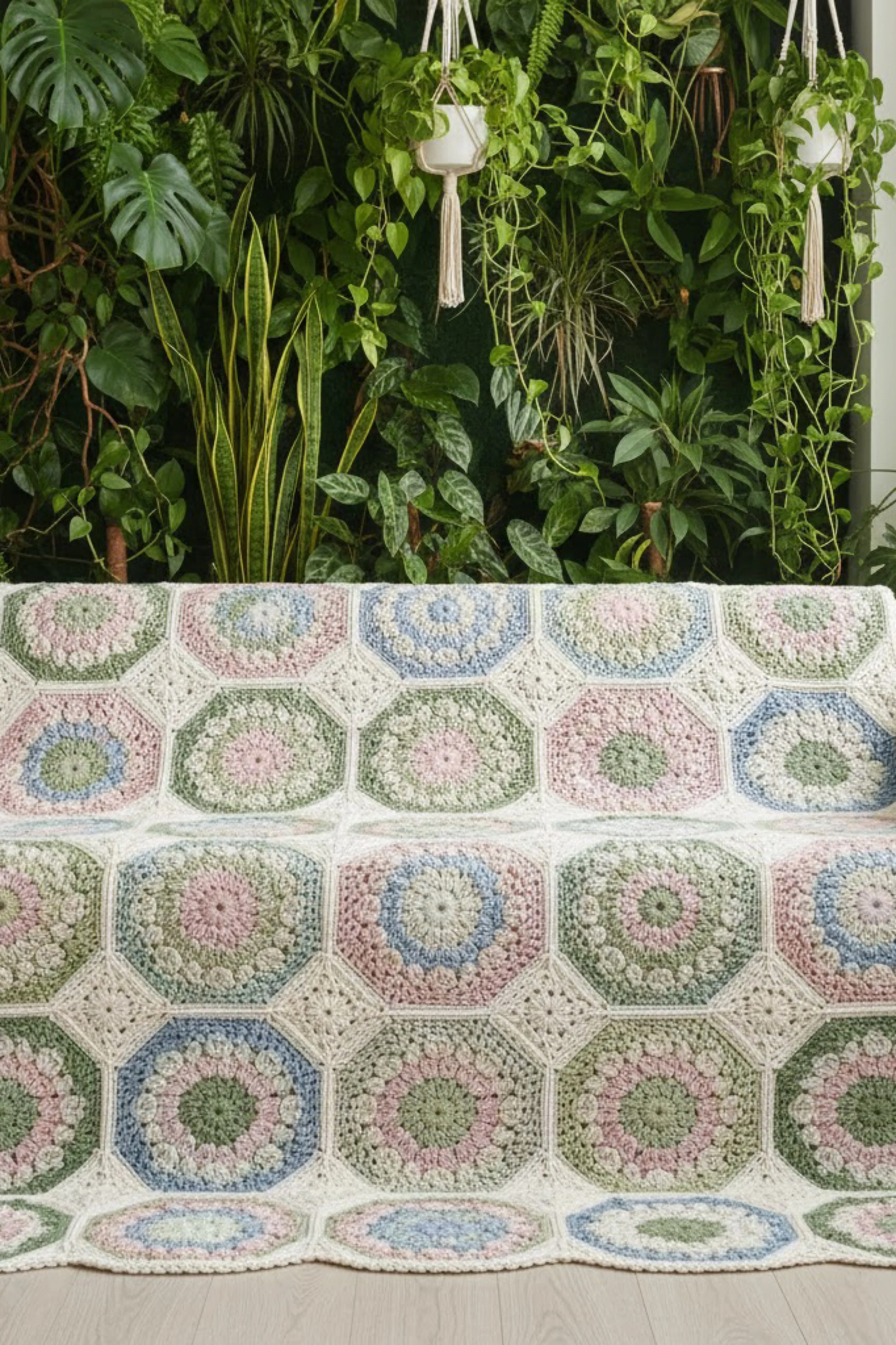 If one of the patterns felt slightly different in your hands than it looked in the image, that is completely normal. Yarn weight, hook size, and tension all shift the texture, and you can use that to your advantage. A smaller hook makes crisp colorwork and sharper motifs. A slightly larger hook adds drape for throws that puddle perfectly over furniture. Either way, the look stays the same: soft spring color, creamy framing, and a finished edge that feels intentional.