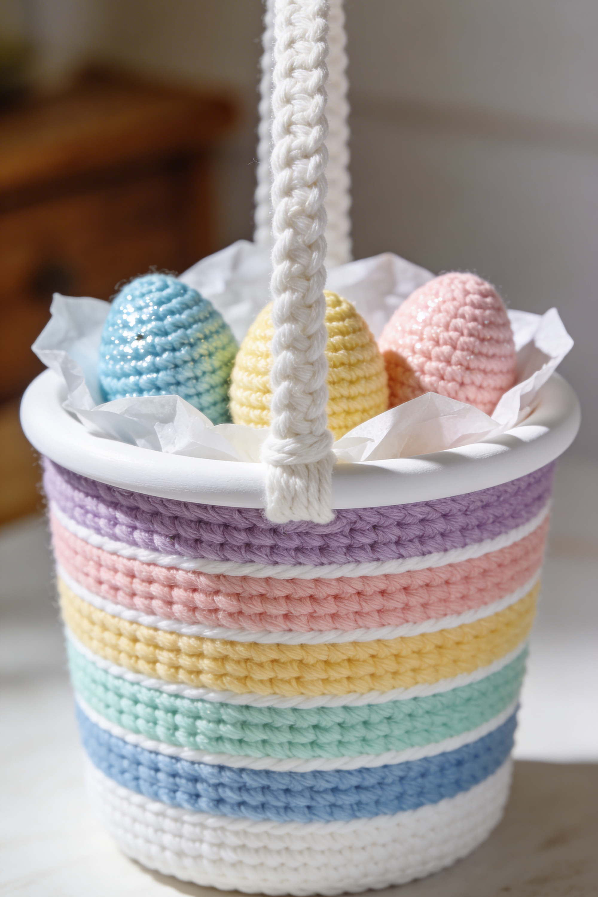 Pastel Rainbow Crochet Easter Basket with Braided Handle Step-by-Step Tutorial