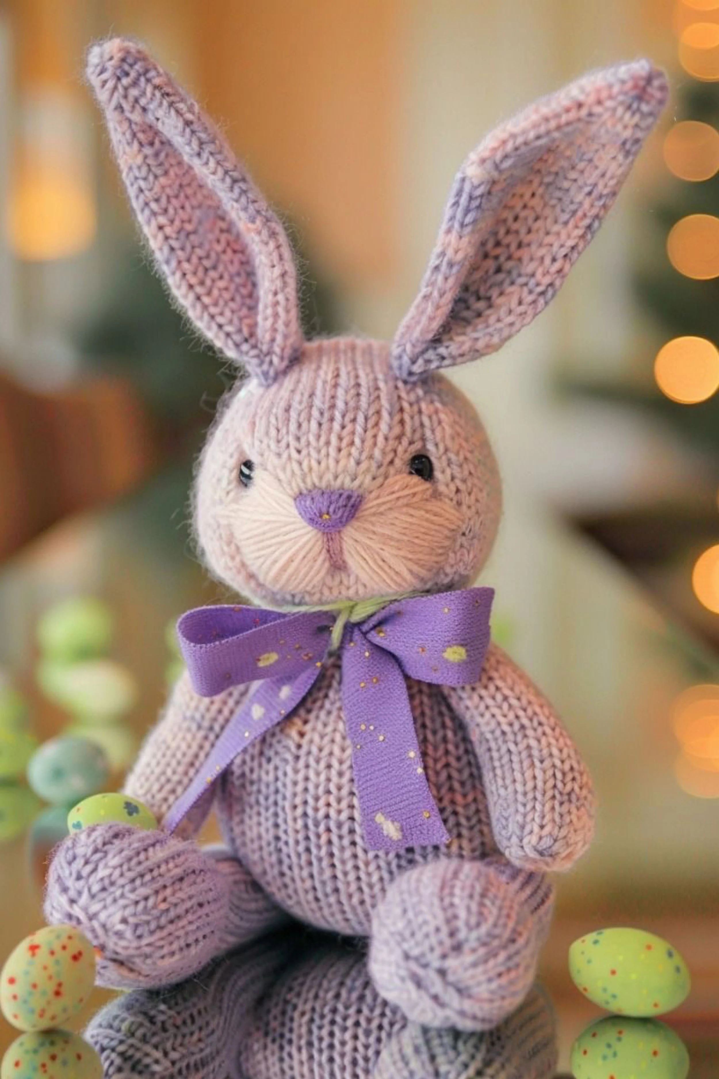 A bunny that looks too lumpy usually needs either firmer stuffing or smaller needles. Dense fabric is essential for knitted toys.