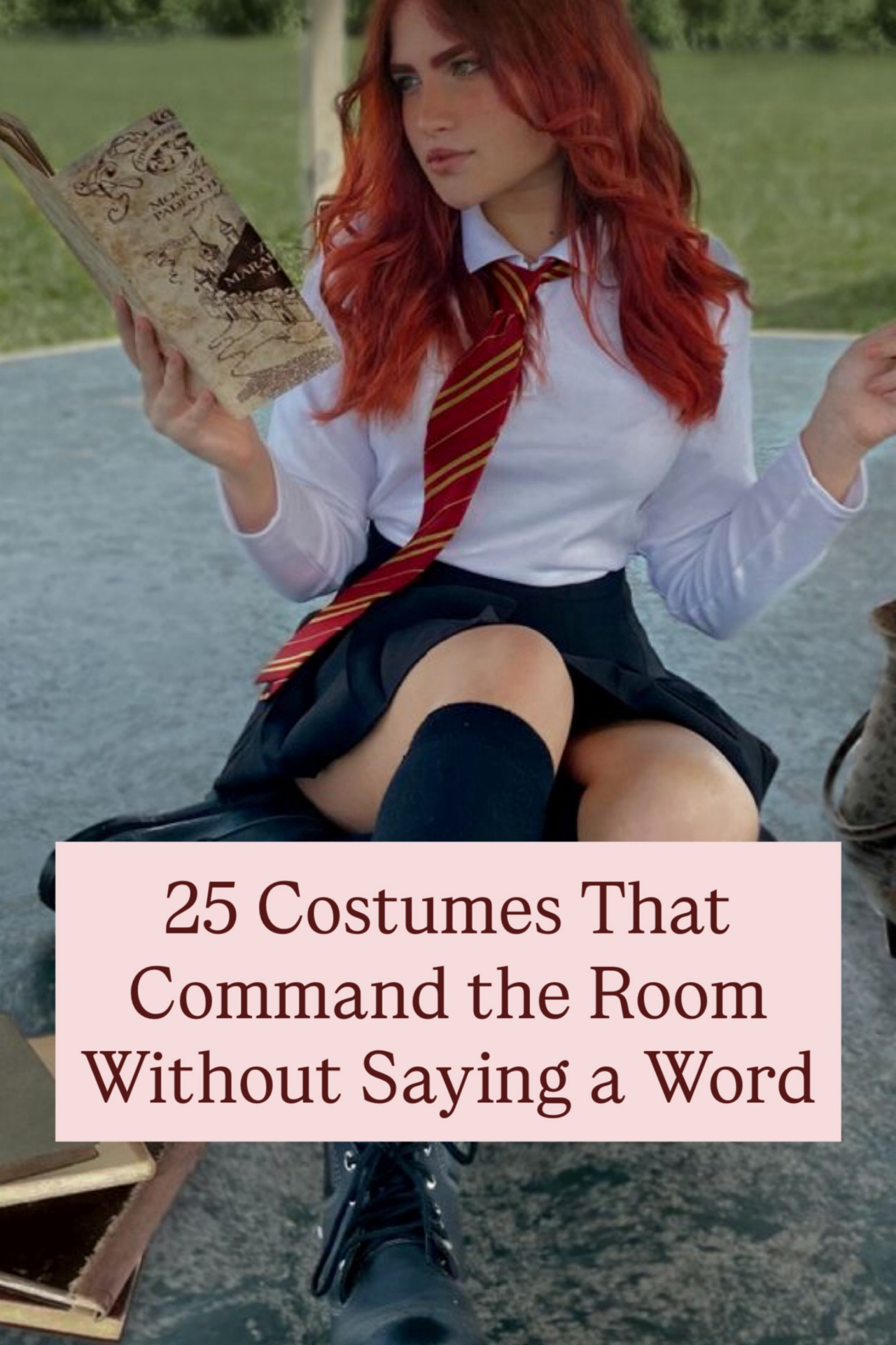 For styling, keep your hair sleek and shiny for contrast. Opt for matte red lips, cat-eye liner, and a soft contour for definition. Pearl earrings or minimal gold hoops can balance the intensity of the look. Pair it with heeled ankle boots or pointed-toe pumps for polish. A small book prop or pen tucked behind the ear makes it fun for costume events. This outfit’s power lies in subtle contrasts—brains meet beauty, structure meets flow, confidence meets play.