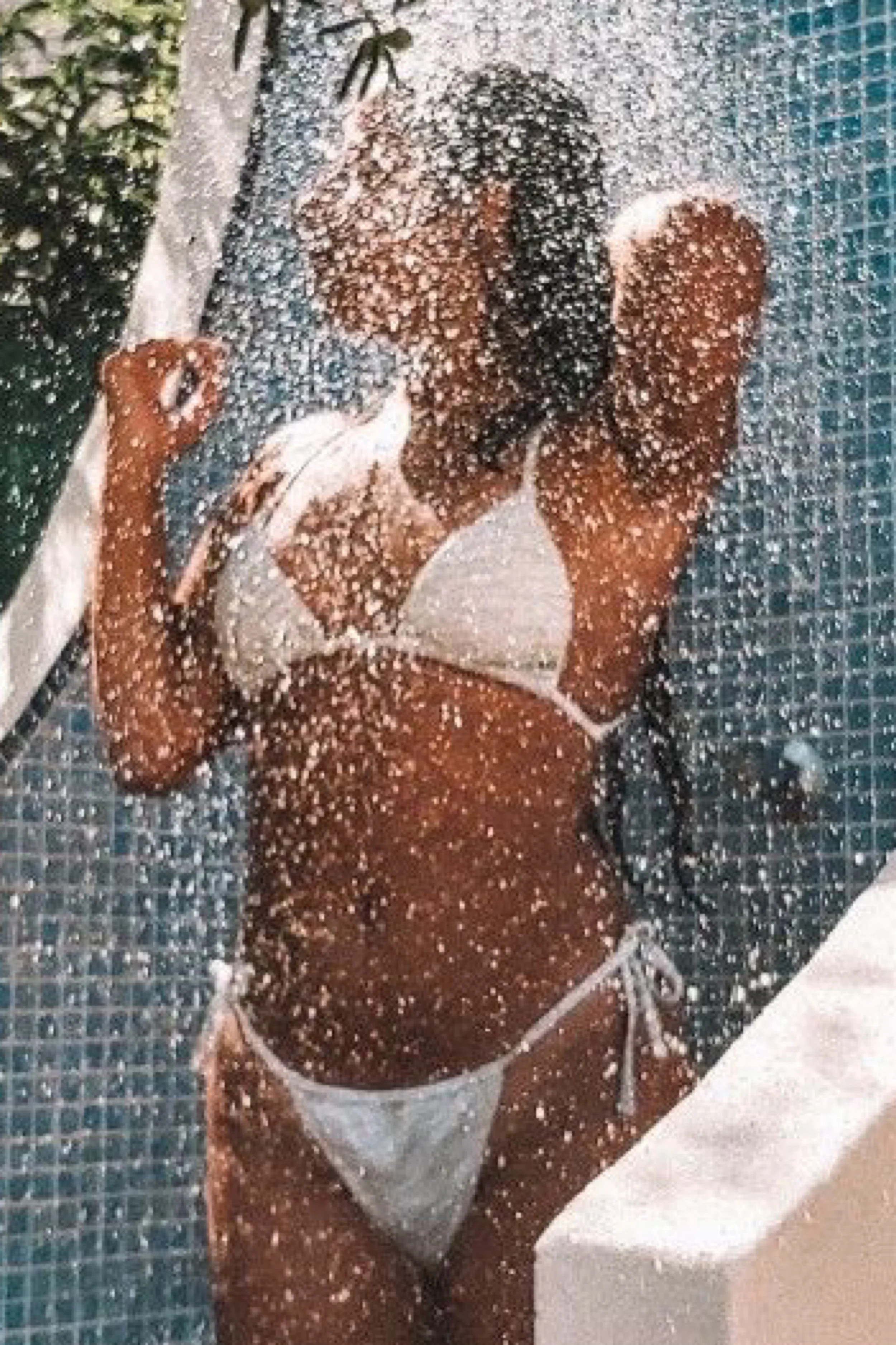 This white string bikini embodies the magic of light and motion. Its simplicity is what makes it unforgettable—sleek, delicate, and illuminated by the water’s shimmer. The triangle top flatters with soft lift, while the adjustable ties sculpt the hips and highlight golden skin. It’s sensual without trying, the kind of look that turns sunlight into silk. Perfect for outdoor showers, tropical mornings, and slow afternoons by the pool, it channels the purest form of summer freedom.