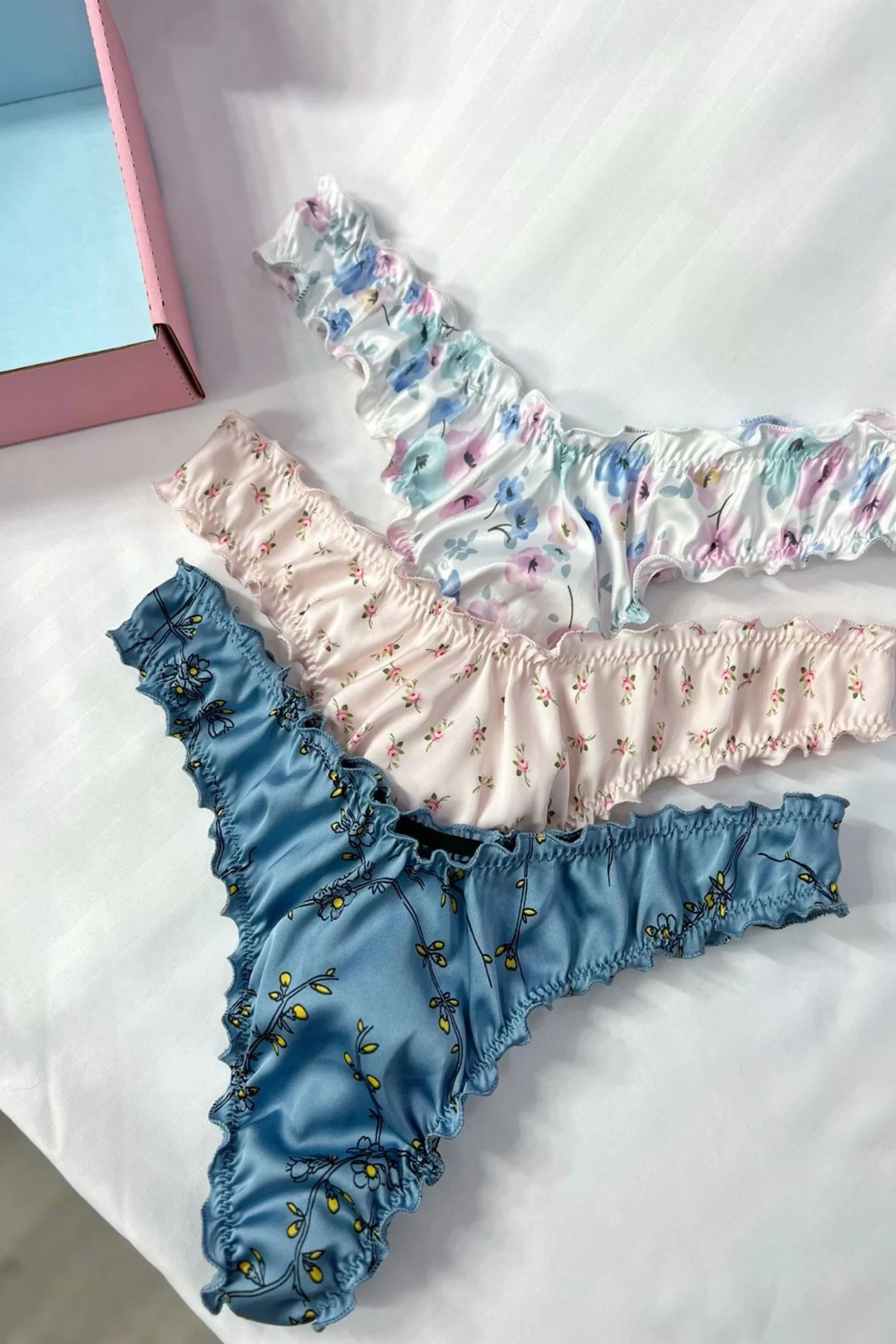 These satin panties, with their playful embroidery and luxe finish, walk the fine line between cheeky and opulent. Pair them with a soft satin or silk bralette in a complementary shade—think deep reds, champagne golds, or blush pinks—to keep the texture theme consistent. Because the embroidery adds a statement detail, balance it with simple, sleek lines elsewhere in your lingerie look. For an extra edge, layer a sheer robe over the top; it creates movement while still letting the embroidery peek through.