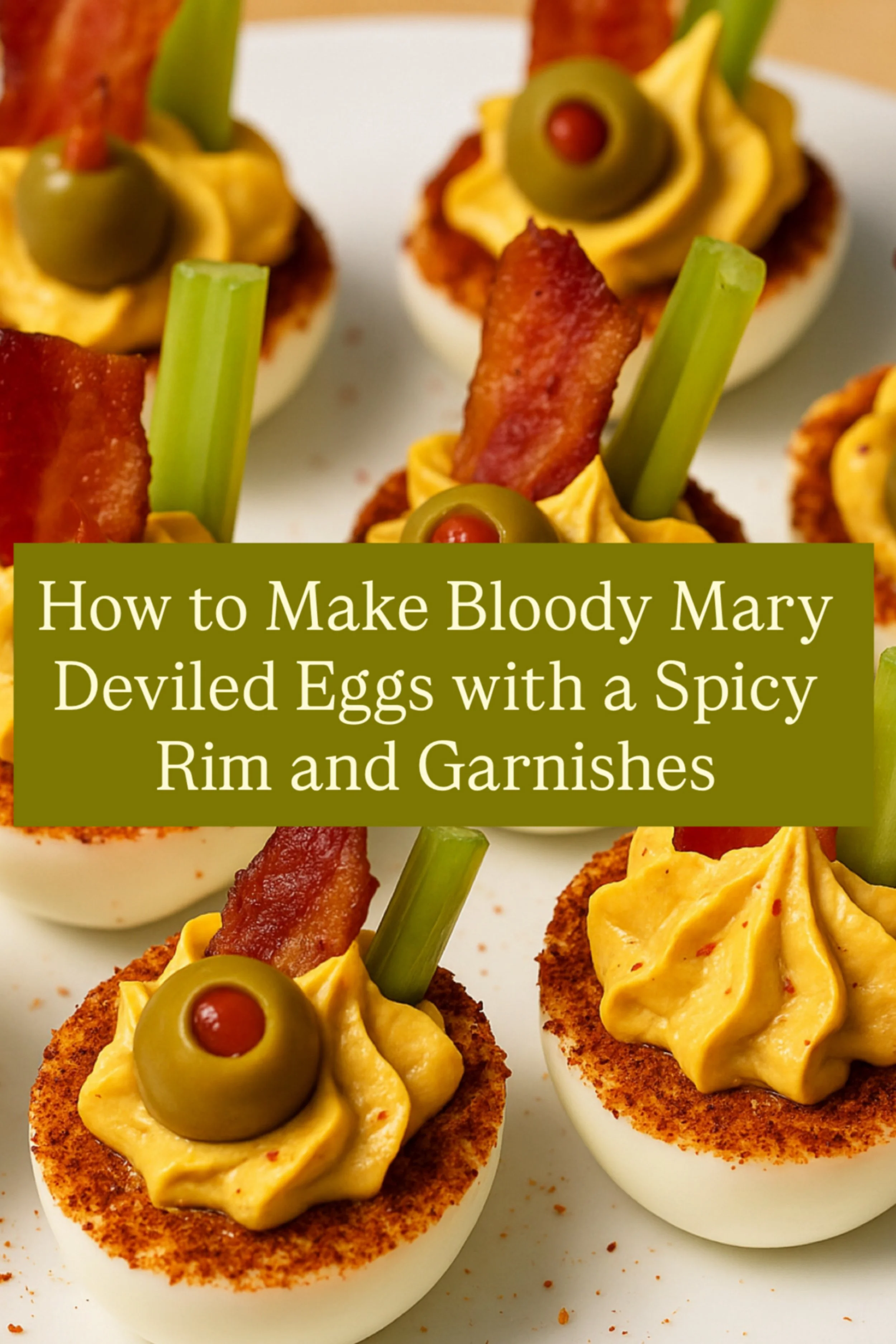 What makes this recipe shine is not just the flavor, but the whole experience. The Old Bay–paprika “rim” mimics the salty edge of a Bloody Mary glass, while crispy shards of bacon, vibrant celery sticks, and glossy olives transform each egg into a miniature garnish masterpiece. These aren’t just snacks; they’re edible centerpieces that embody the spirit of brunch culture—cheerful, a little cheeky, and built to be enjoyed with friends.