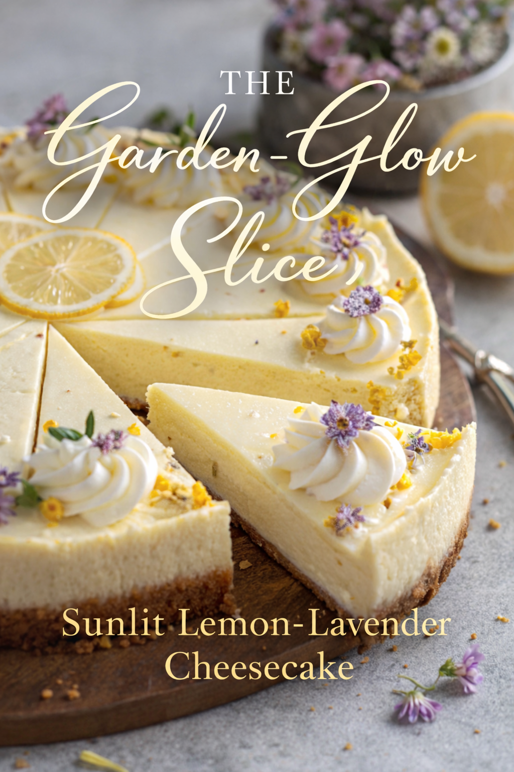 The Garden-Glow Slice: Sunlit Lemon-Lavender Cheesecake