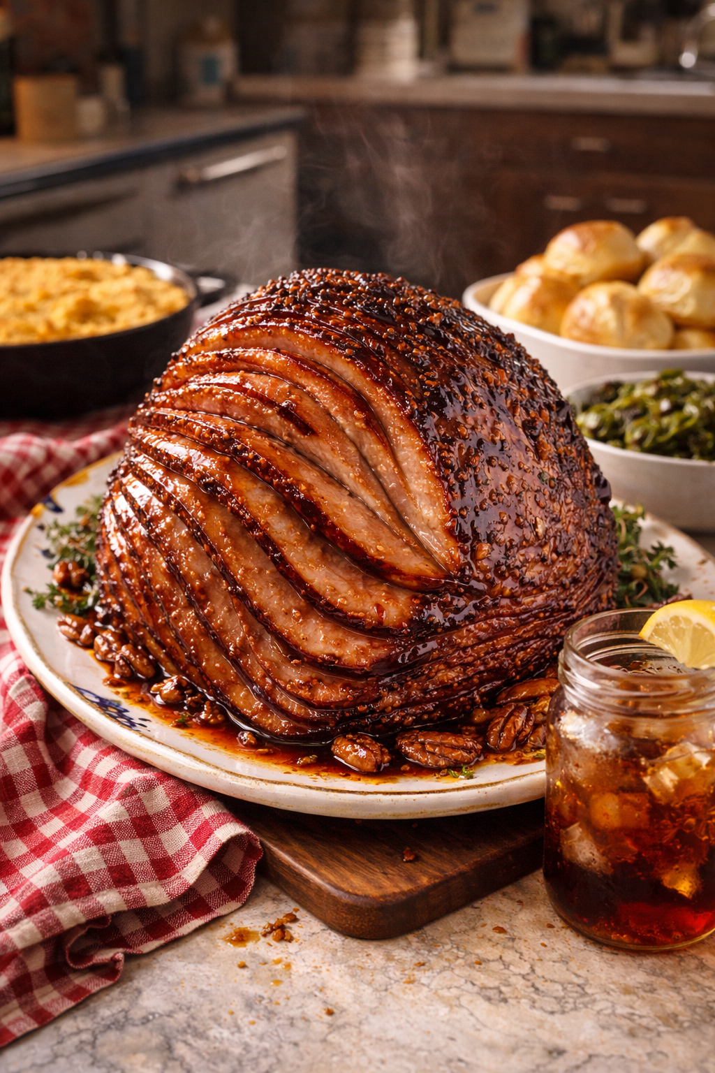 The Honey-Pecan Eclipse: Bourbon-Glazed Spiral Ham That Steals the Table