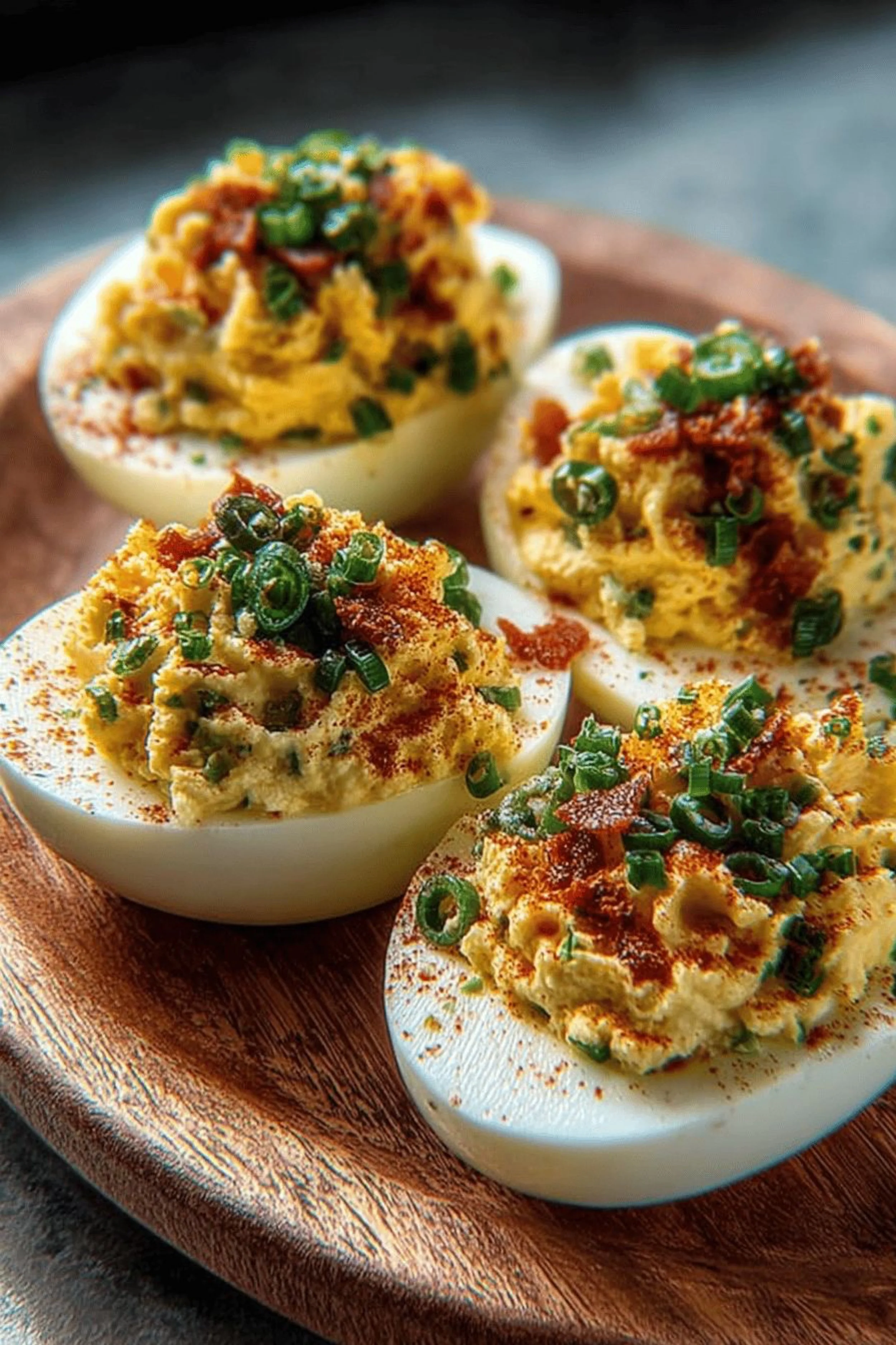 When they’re done right, these deviled eggs hit exactly what the photo promises: creamy, whipped peaks; the warm spice of paprika; the bright green bite of chives; and that savory crunch that makes each bite feel intentional. Put them on a wooden board, pour something cold, and they’ll vanish faster than anything else on the table.