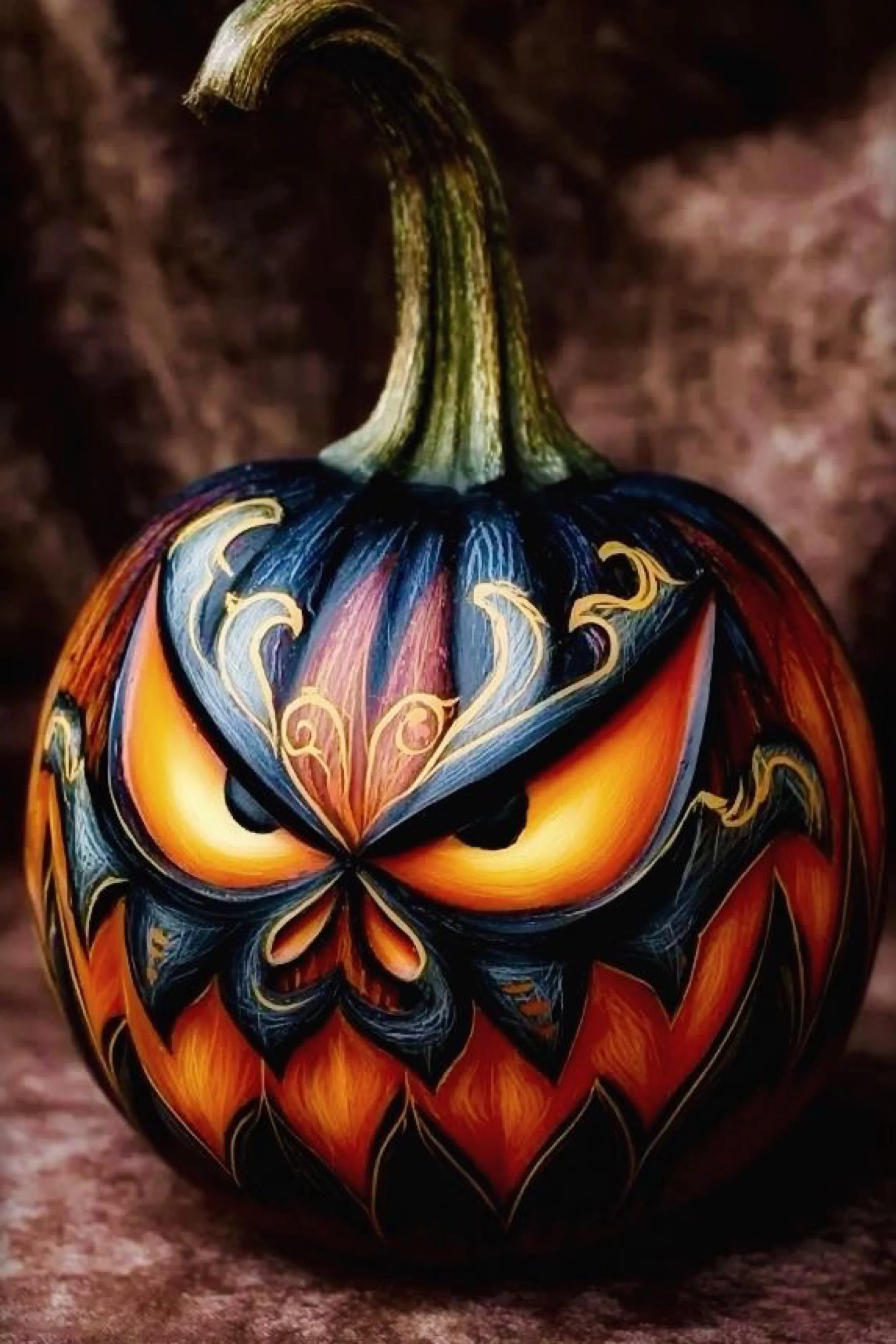 These pumpkins don’t just sit on porches; they tell stories. They glow without candles, seduce without spells, and hint at what might happen after midnight. Whether you love eerie elegance, playful color, or the thrill of gothic glamour, this gallery invites you to paint your own kind of magic.