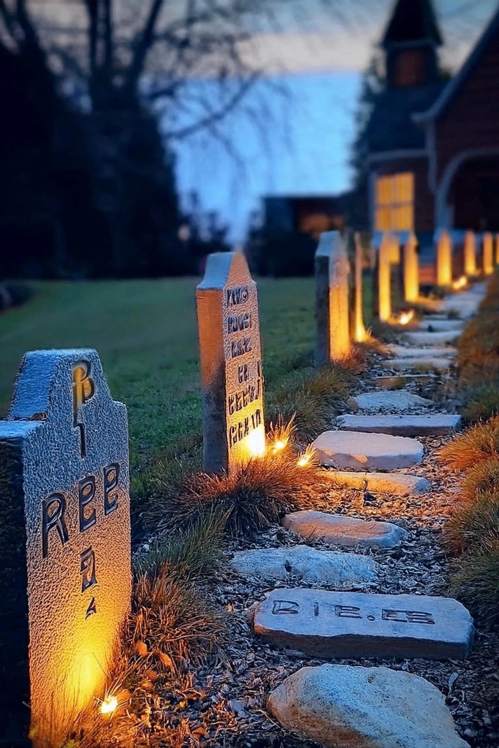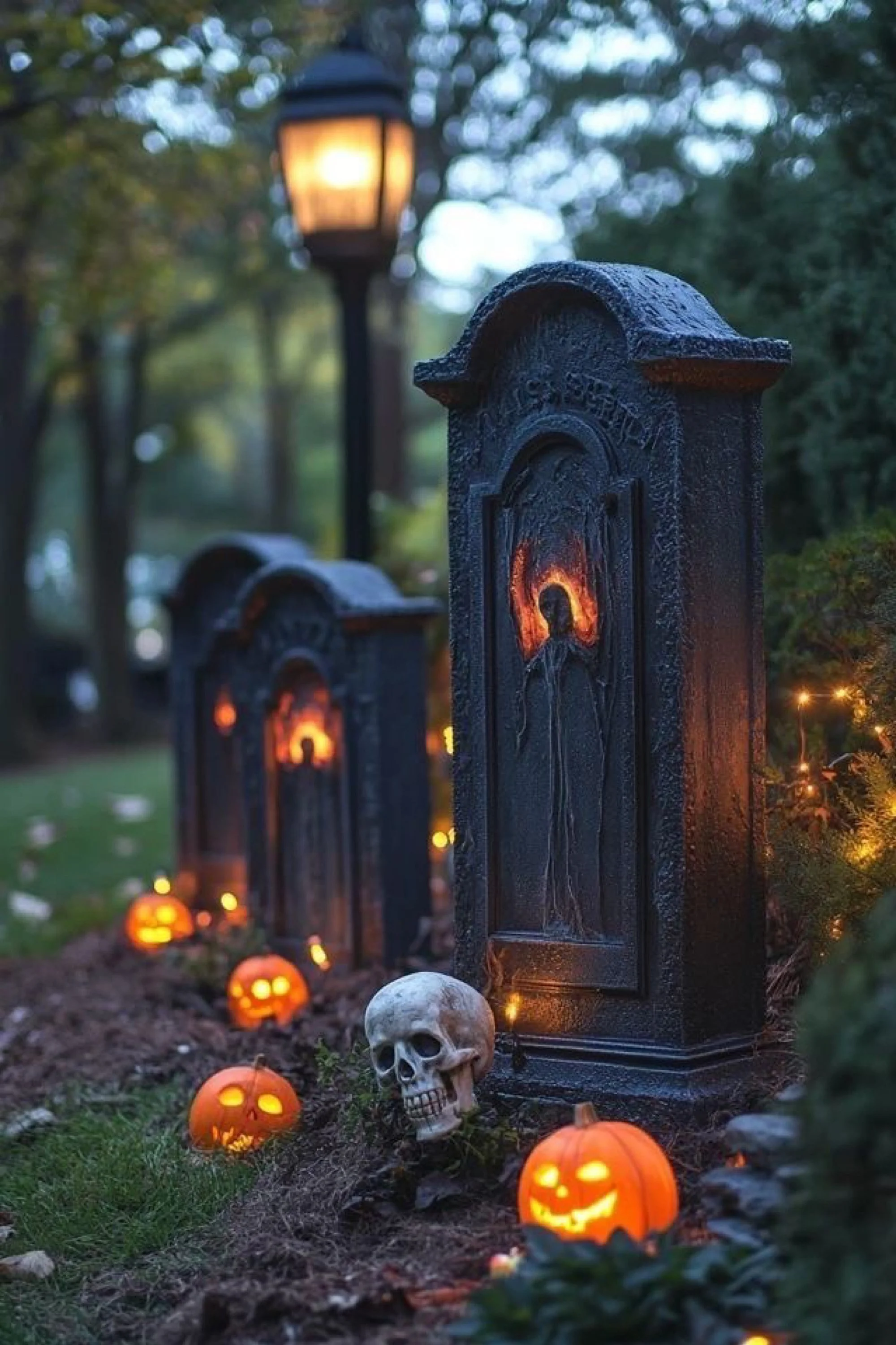 - Mix store-bought gravestones with handmade foam or concrete ones for texture.