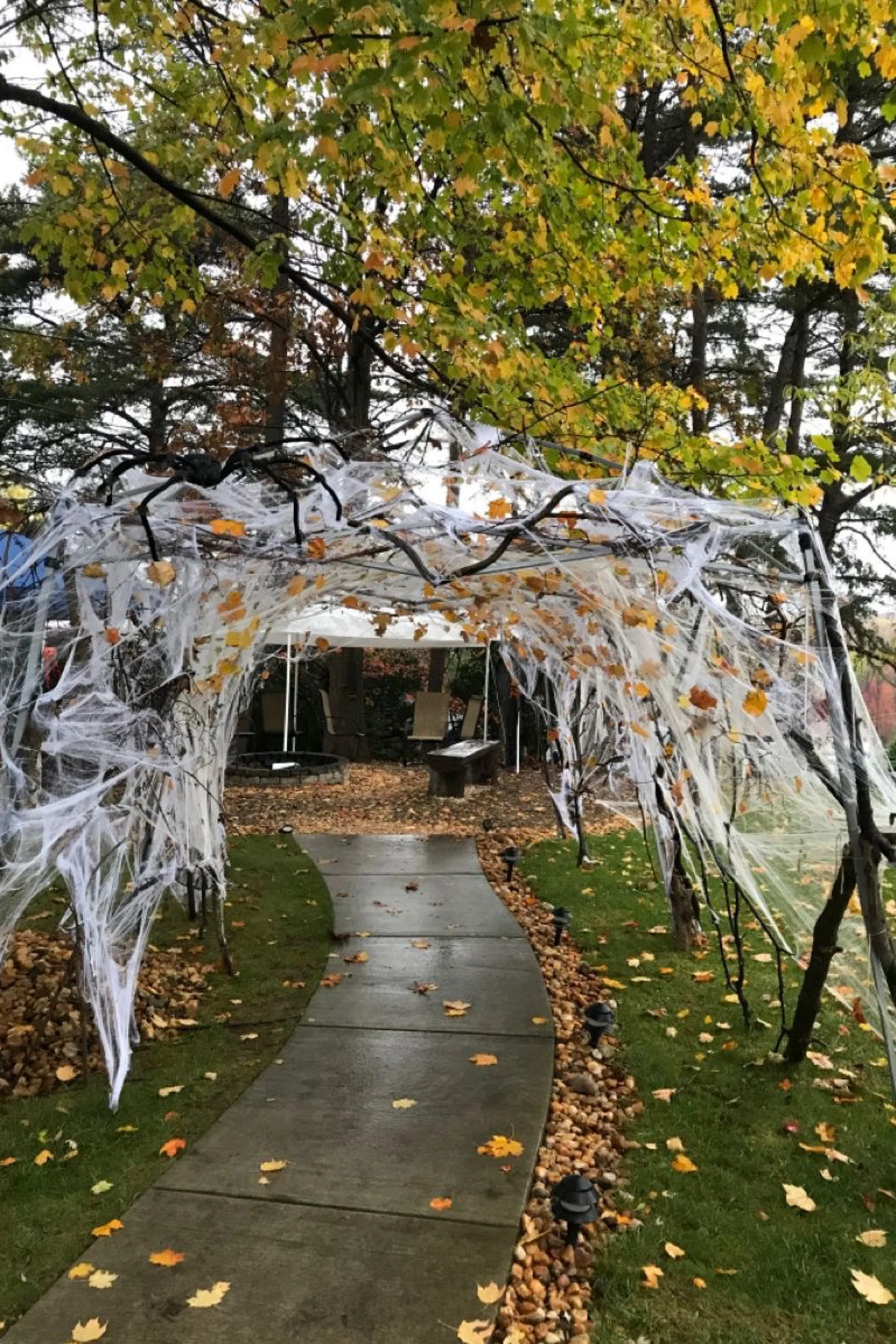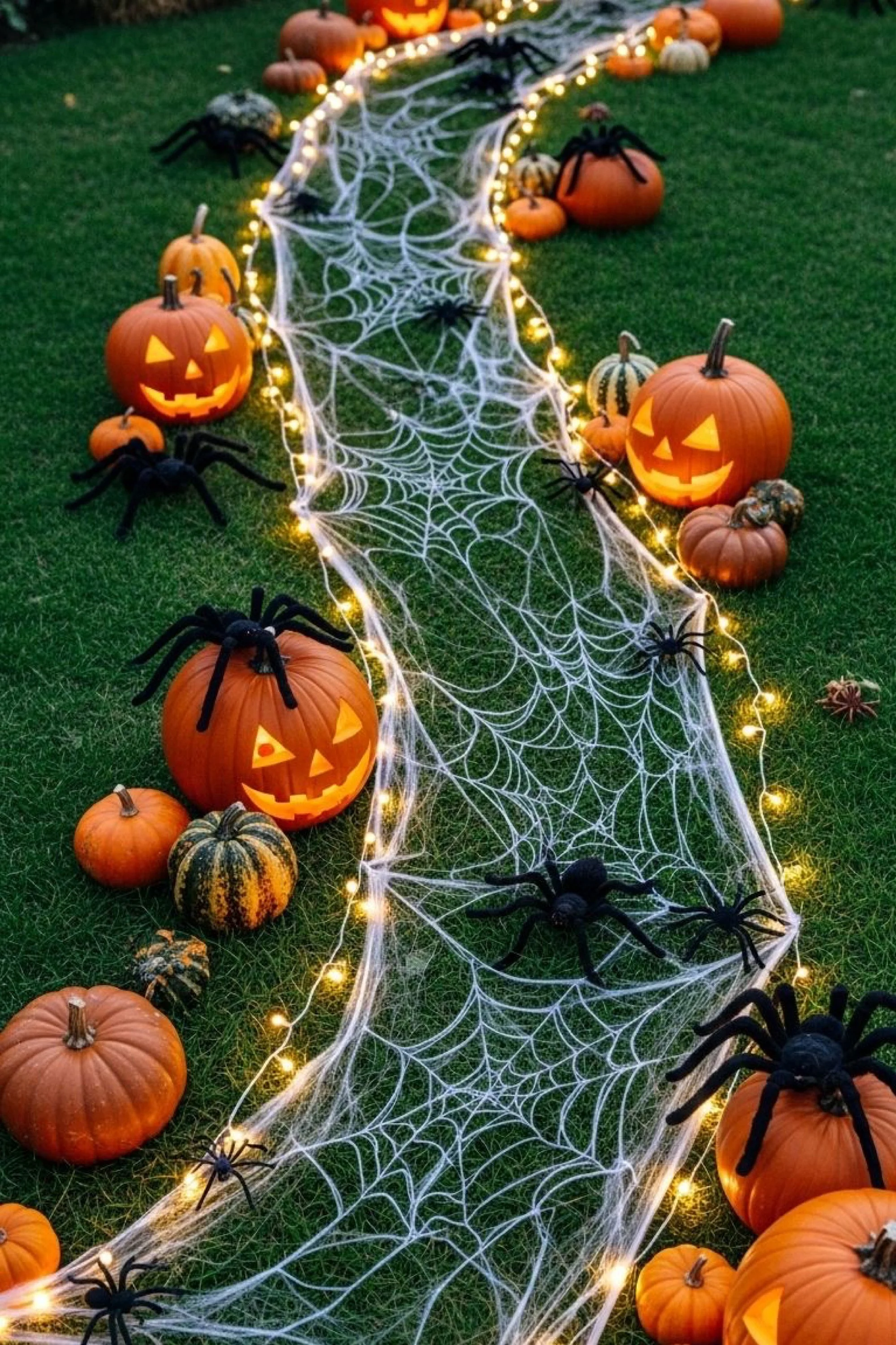 - Faux spiderwebs between low shrubs, catching just enough light to shimmer.