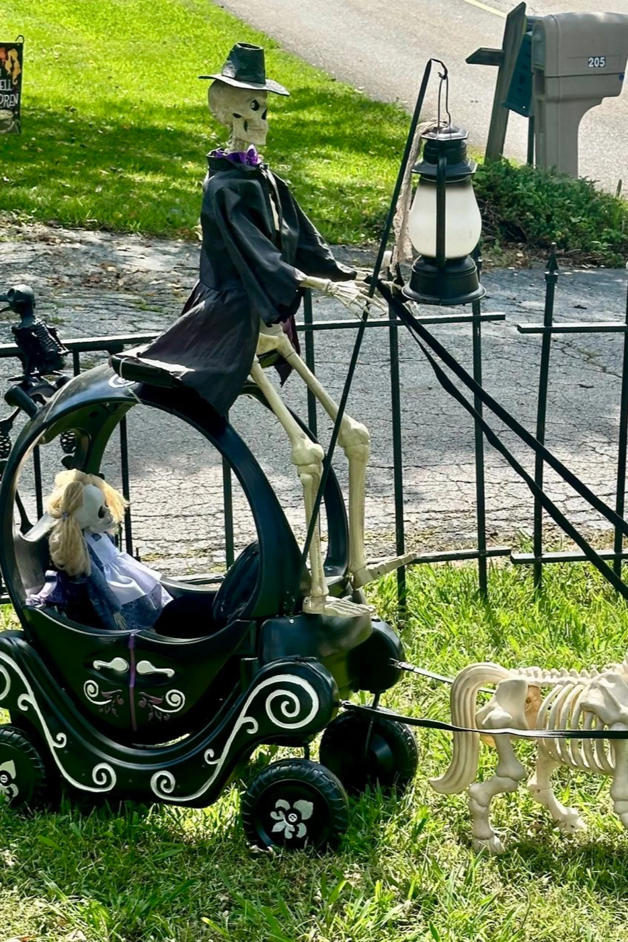 Is your skeleton an eerie reaper guarding the entryway? A whimsical gardener rising from the ivy? A dinner guest at a haunted feast? A theme gives you a roadmap for props, colors, and accessories.