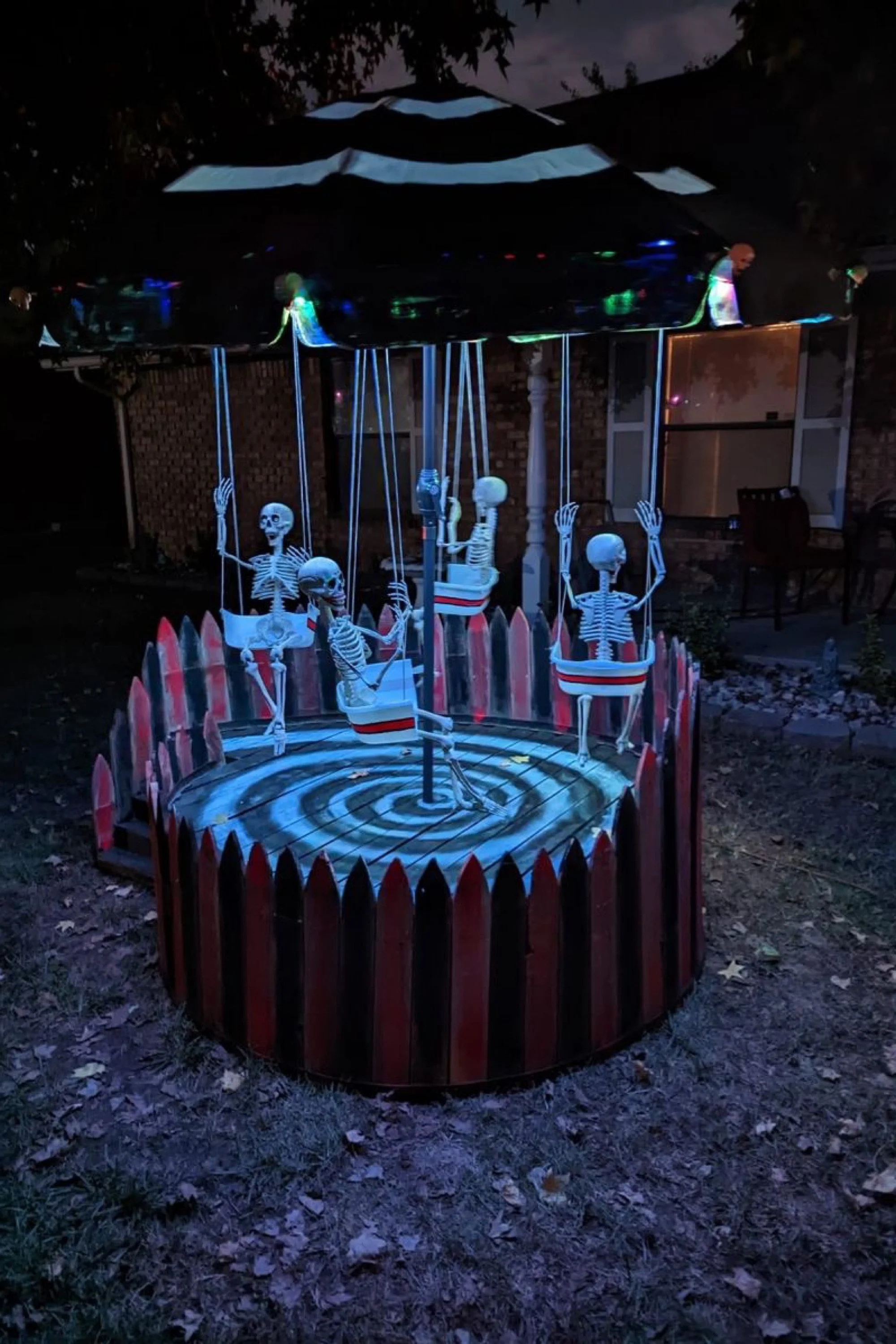 To really lean into the puppet show vibe, set up outdoor speakers playing eerie carnival or music box tunes. It will transform the scene from a static yard prop into a bone-chilling performance that lingers in your guests’ minds.