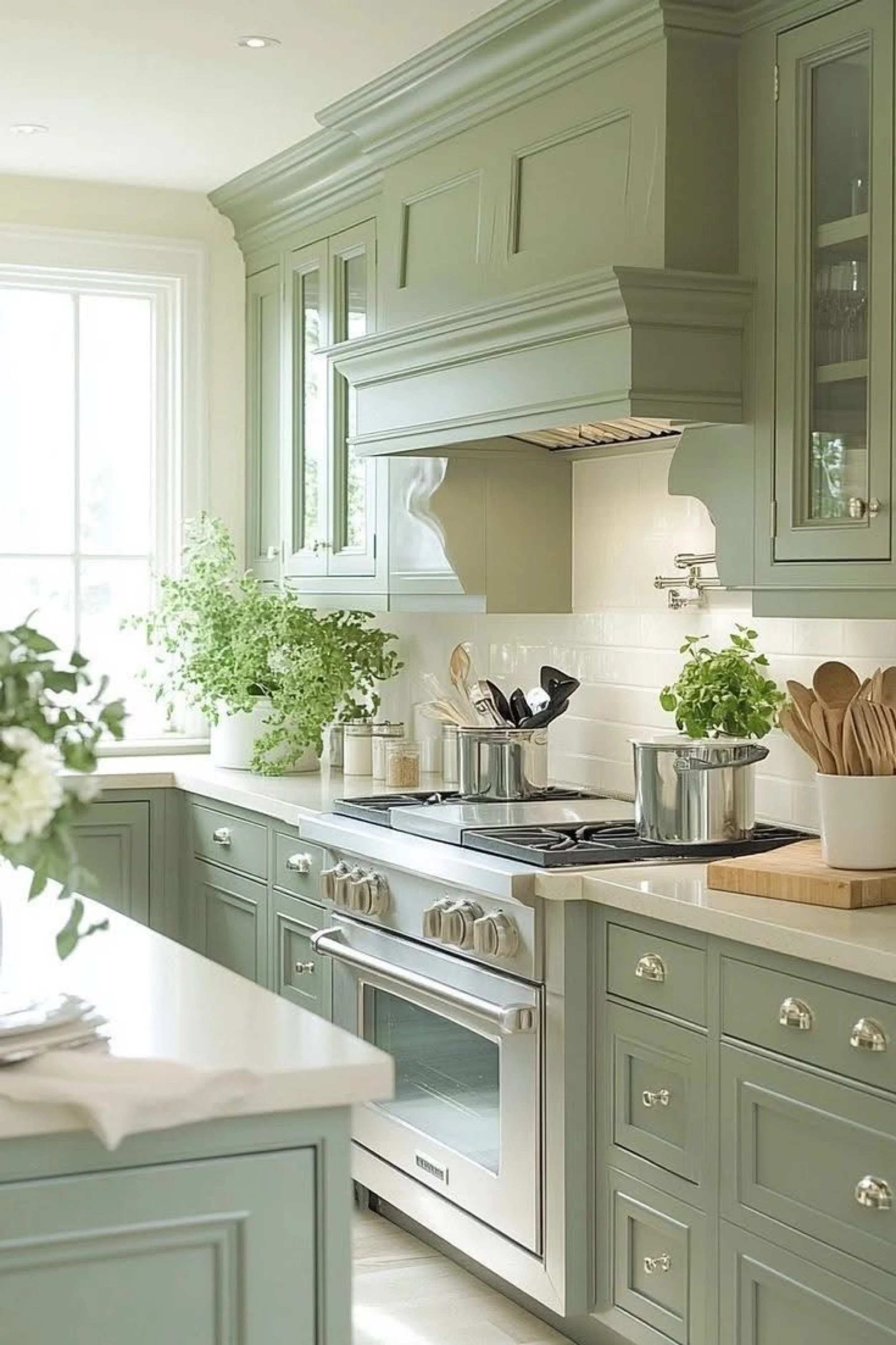 Sage Green Kitchen Idea 8: Classic Bright Elegance