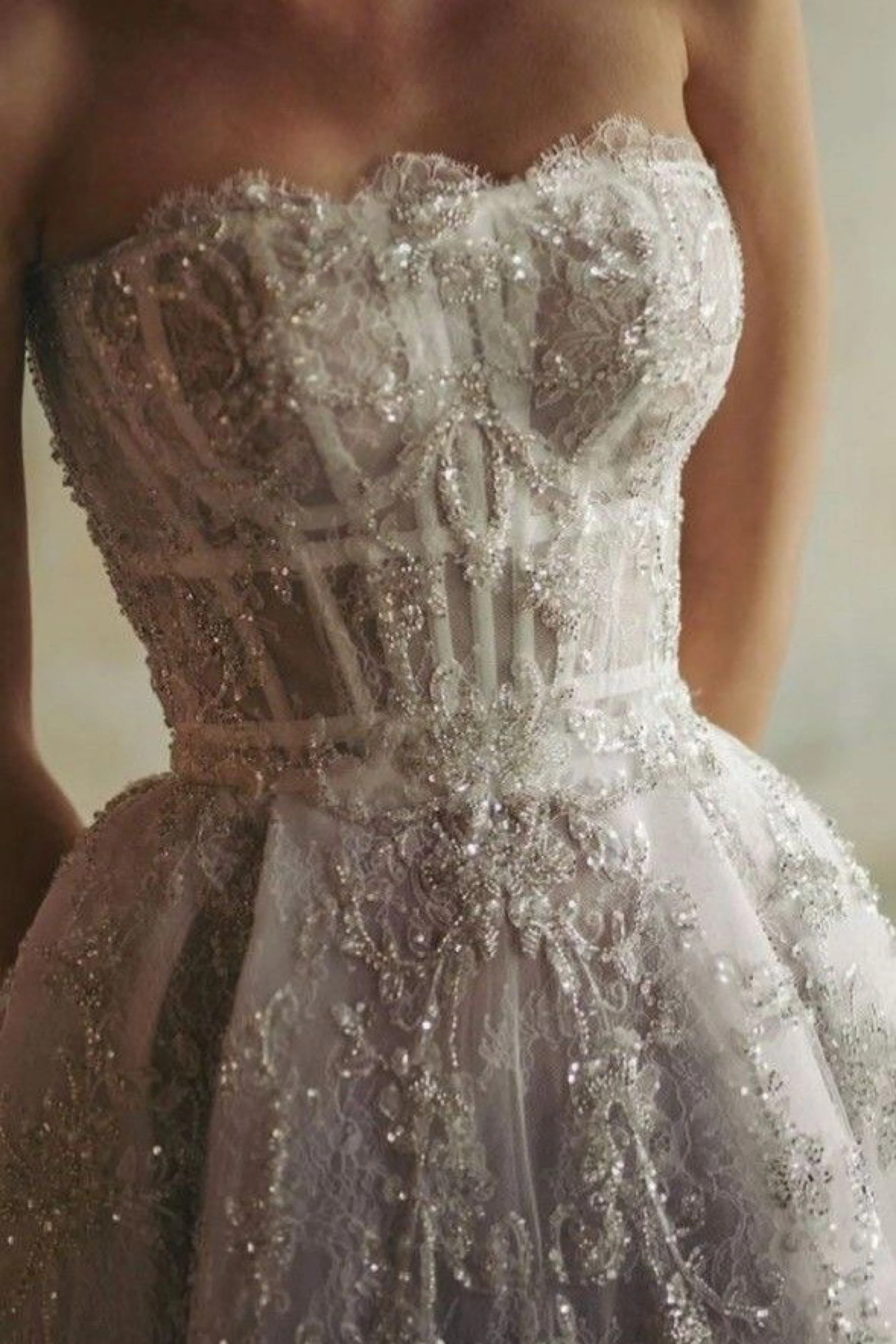 - Slip into a similar romantic silhouette with a lace corset wedding dress